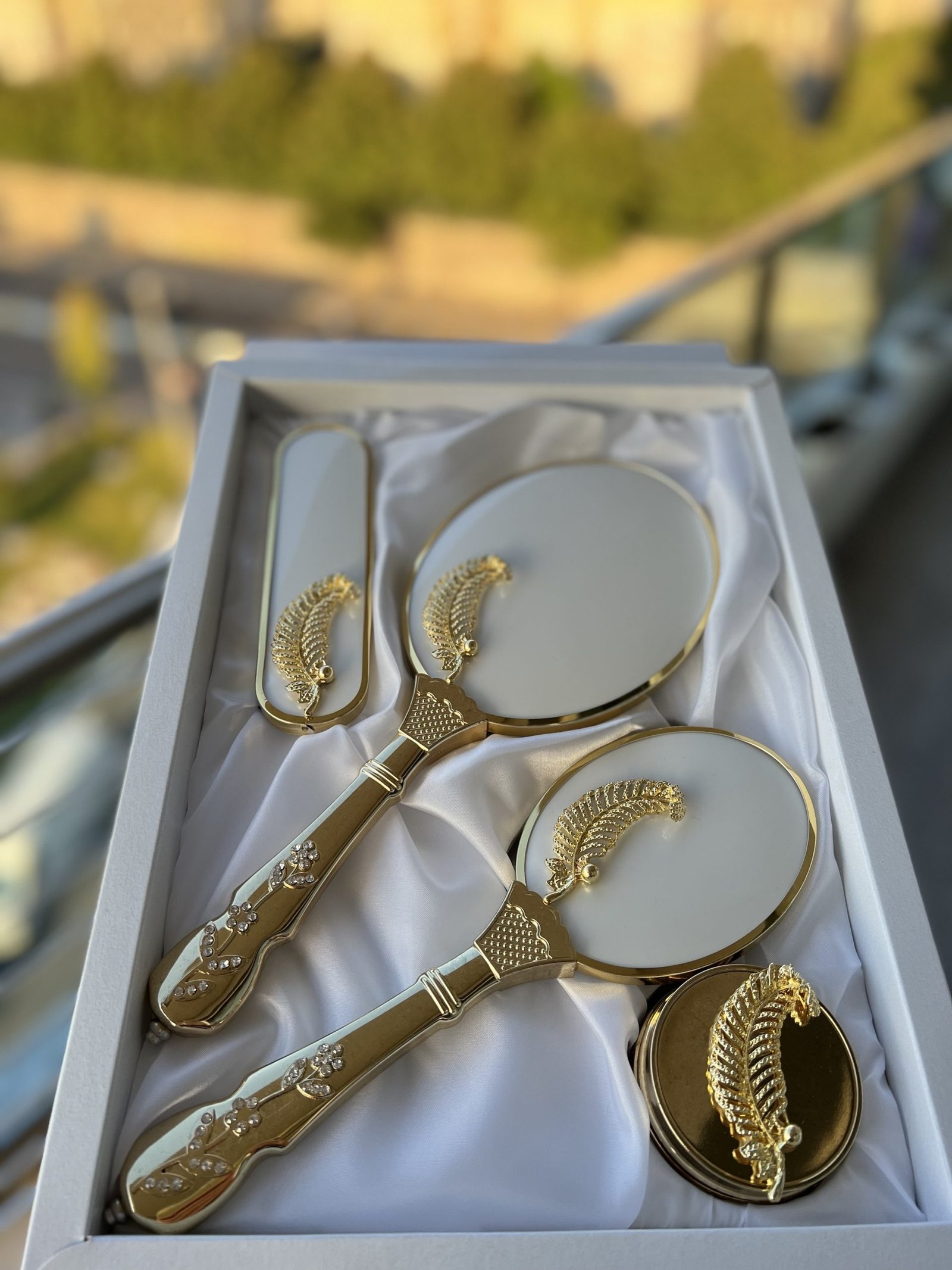 Beyaz Ağaç Ayna Tarak *Gold